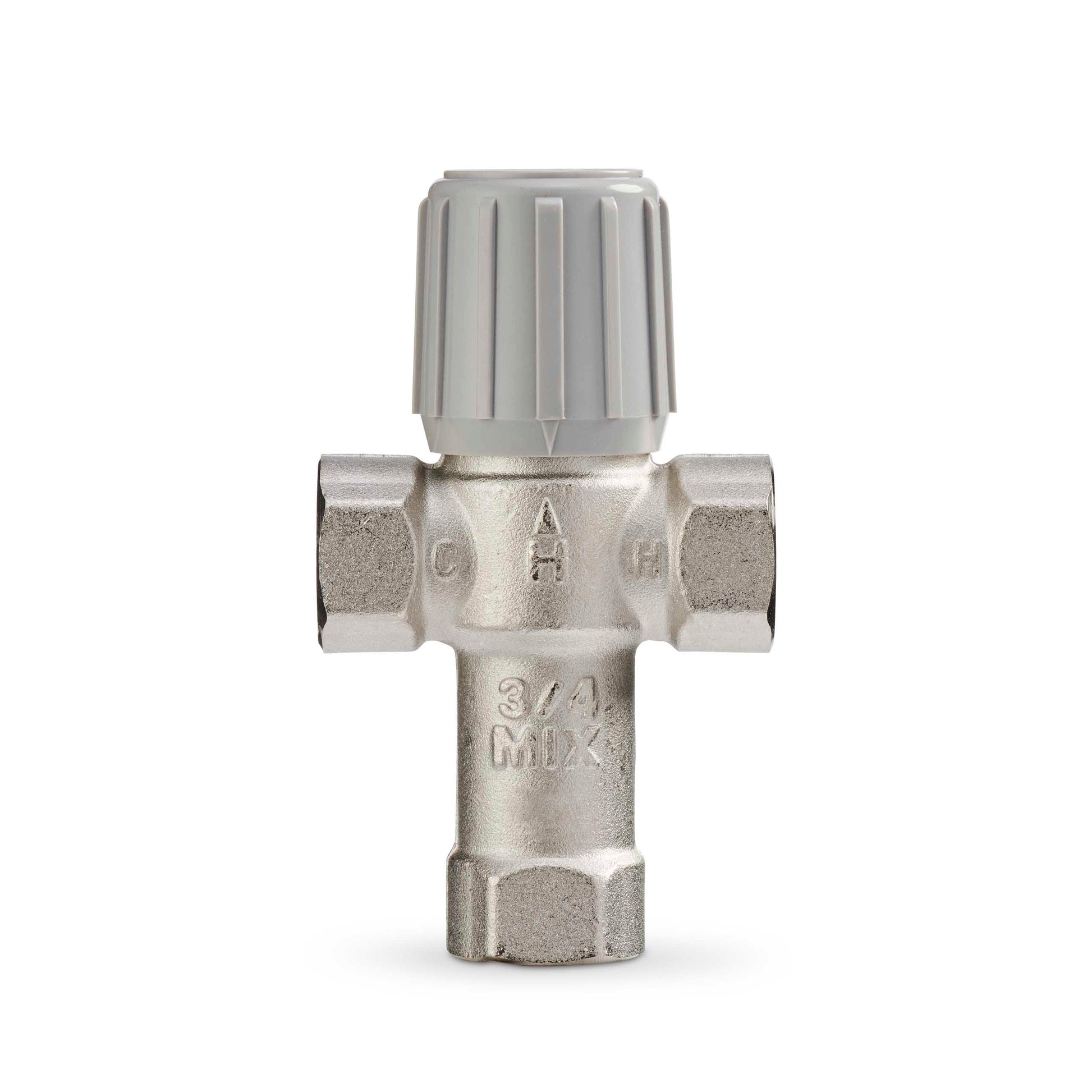 Thermostatic Mixing Valve; Type Thermostatic; Nominal Size 1 Inch; End Connection Threaded x Threaded x Threaded; End to End Distance 3 Inch; Base to Inlet Dimension 2.7 Inch; Inlet to Mixing Outlet Dimension 2.7 Inch; Body Material Non-Stick Coated Nickel Plated Brass; Flow Rate 0.5 GPM; Temperature Rating 212 Deg F; Pressure Rating 150 PSI; Inclusions/Features Anti-Scald, Anti-Chill Protection, Proportional Valve, Dual Purpose Mixing or Diverting Valve, Tamper Resistant Design, Straight-Through Design; Application Domestic Water, Nursing Home, Public Facilities, Automatic Faucet, Radiant Floor Heating, Space Heating, Combo System, Solar Hot Water, Greenhouse, Industrial Application, Photo Processing; Applicable Standard ASSE 1017, CSA, IAPMO; Lead-Free; Length 5.8 Inch; Operating Temperature 70 to 145 Deg F; Flow Capacity 4.3 Cv; O-Ring Material EPDM Rubber