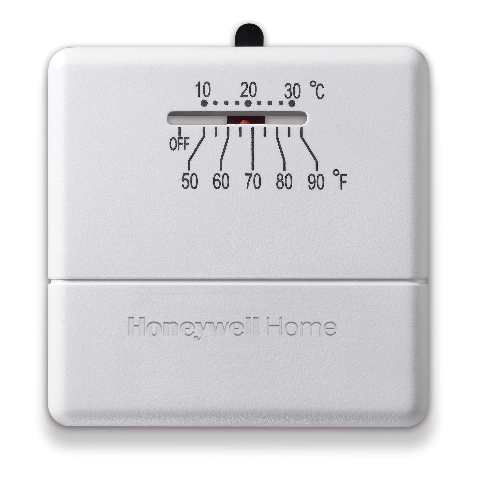 Thermostat; Type Non-Programmable, 1-Heat/1-Cool; Cover Type Square; Color Premier White; Voltage Rating 20 to 30 Volt AC; Current Rating 1 Amp at 24 Volt AC (Heat/Cool/Fan); Switch Type SPDT, Snap Action; Size 3-1/8 Inch Width x 7/8 Inch Depth x 3-1/8 Inch Height; Inrush Current 2.5 Amp (Cool/Heat), 5 Amp (Fan) at 24 Volt AC; Sensor Element Thermistor Bimetal; Humidity Range 5 to 90 Percent Relative (Non-Condensing); Terminal Designations R, W, Y, G; Accuracy +/-3 Deg F; Setting Temperature Rating 50 to 90 Deg F; Includes Dealer Logo Pocket