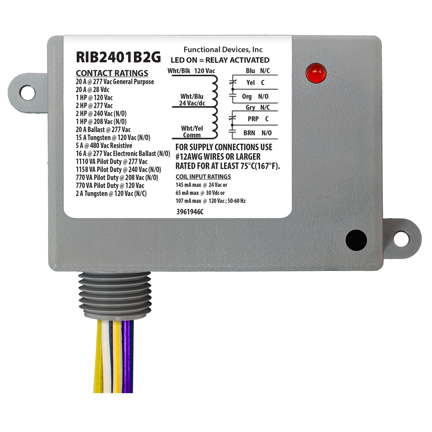 RIBRIB2401B2G Enclosed Relay 20amp DPDT w/24 Vac/dc/120 Vac coil