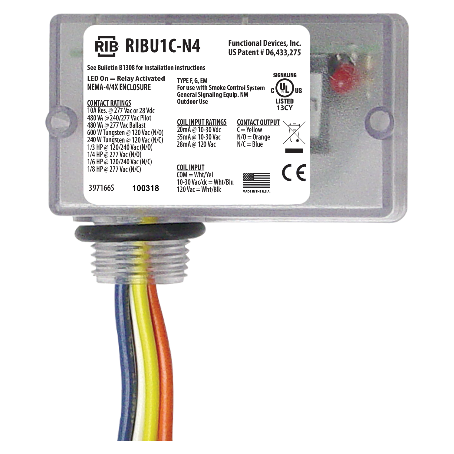 Enclosed Relay Nema4/4x 10amp Spdt 10-30vac/dc/120vac