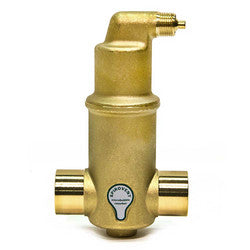 Air Eliminator; Nominal Size 1 Inch; End Connection Soldered x Soldered; End to End Distance 4.5 Inch; Body Material Brass; Pressure Rating 150 PSIG; Temperature Rating 270 Deg F; Flow Rate 10 GPM; Inlet Velocity 4 Foot/Second