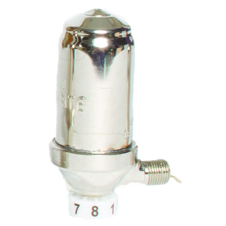 Radiator Vent; Type Non-Vacuum, Automatic; Inlet Size 1/8 Inch; Inlet Connection Male Threaded; Port Type Adjustable; Body Material Nickel Plated Brass; Pressure Rating 3 PSI; Vent Port 3/32 Inch; Vent Height 3-1/4 Inch