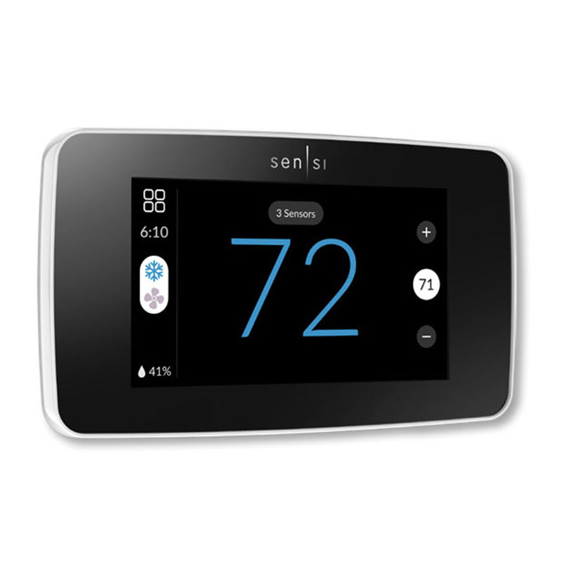 24v Sensi Touch 2 Smart Thermostat, White, Works with Sensi Room Sensors, Remote Access Via Smartphone, Tablet or PC. Smart Home compatible With Apple HomeKit, Amazon Alexa, Wink. Features Geofencing, Smart Alerts, Universal Single Stage, Multi-Stage (2H/2C), Heat Pump (4H/2C), 7 Day Pgm, Humidity, Auto Changeover, Early Start, Keypad Lock Out, Selectable F/C, Range 45-99F. Terminals- RC, RH, C, W/E, W2/*, Y, Y2/, *, O/B, G, Acc+, Acc-
